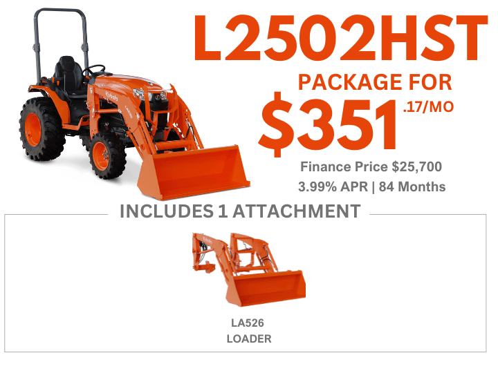 Kubota L2502HST Tractor Package – includes L526 Loader