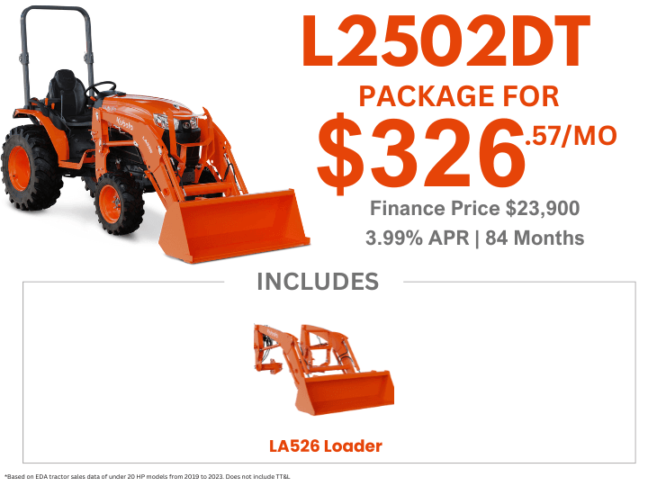 Kubota L2502HST Tractor Package – includes L526 Loader
